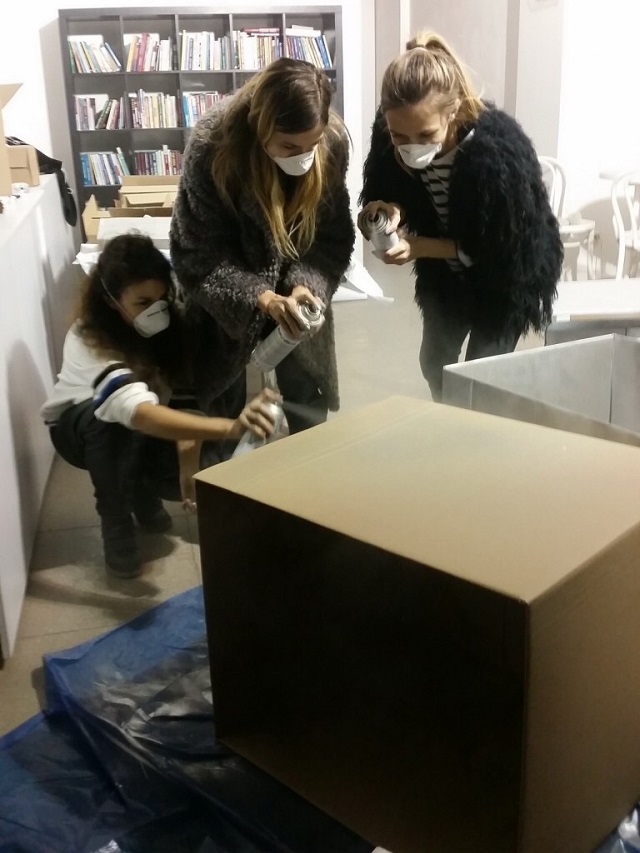 Cele trei s-au apucat din timp de pregătit cadourile de Crăciun pentru cei dragi, aşa că au muncit din greu pentru ca ele să are exact aşa cum şi-au dorit. Au tăiat, şi au decorat cutii cu ajutorul unui spray colorat din cauza căruia au avut nevoie de măşti şi s-au fotografiat în această poziţie amuzantă.