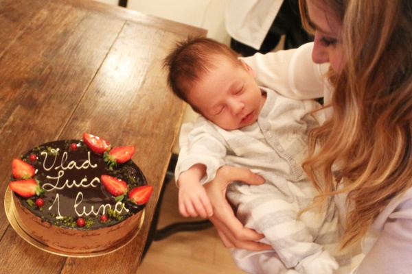 "Vlad a implinit 1 luna. Am sarbatorit evenimentul, fireste, in cadru restrans, alaturi doar de familie si nasi. Creste de la o zi la alta si, in acelasi ritm ametitor, ma face sa-l iubesc tot mai mult. La mini petrecerea lui a dormit continuu. Nici cand am adus tortul nu a vrut sa se trezeasca. S-a uitat cu coada ochiului la noi pentru o secunda, ne-a vazut pe toti agitati in jurul lui, si s-a culcat la loc. Abia cand au plecat toti invitatii a facut ochisori si ne-am reluat ritualul de seara. Asa ca, inca cu el in brate, va spun voua “Noapte Buna”, iar pe el il mai pup o data spunandu-i “La Multi Ani, minune mica!”. Esti tare iubit, sa stii!", a scris Dana Rogoz pe blog, unde a publicat mai mute fotografii de la eveniment.
