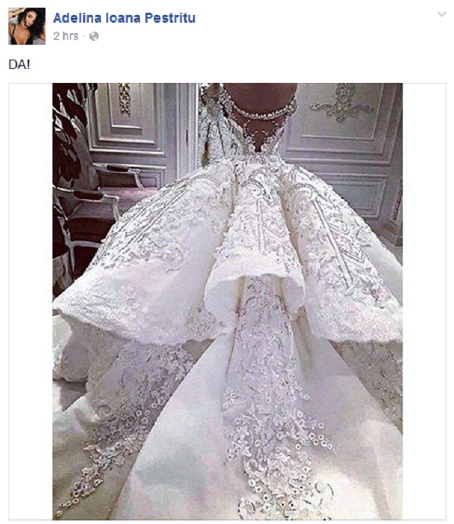 Cei doi porumbei sunt ca soţ şi soţie. Adelina a postat pe pagina sa personală de Facebook o fotografie cu o frumoasă rochie de mireasă, iar descrierea a fost, deşi dintr-un singur cuvânt, surprinzătoare: "DA".