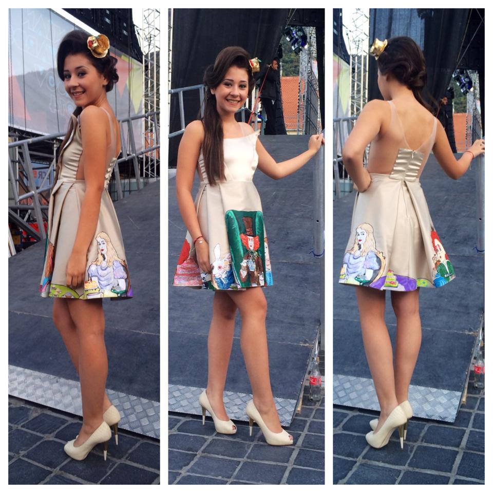 Nicole Cherry nu mai este o copilă. Cântăreaţa a crescut şi s-a transformat într-o domnişoară foarte frumoasă şi atrăgătoare. Îmbrăcată într-o rochie beige, cu spate transparent, artista a păstrat nota copilăriei prin impremeurile cu desene animate. Ţinuta a fost completată de o pereche de pantofi cu toc înalt, care i-au dat un plus de eleganţă şi senzualitate.