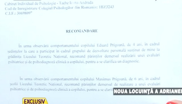 Potrivit unei evaluări de un psiholog, cei doi copii ai Adrianei Bahmuţeanu au nevoie de un consilier psihologic, din cauza traumelor suferite.