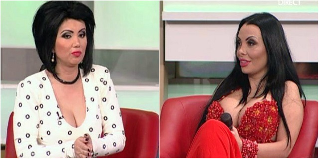 Adriana Bahmuţeanu şi Mona - Dansatoarea s-au întrecut în decolteuri. Dacă prezentatoarea "Necenzurat" preferă bluzele mai discrete, Mona şi-a expus bustul imens în sutienul neîncăpător al costumului de dans.