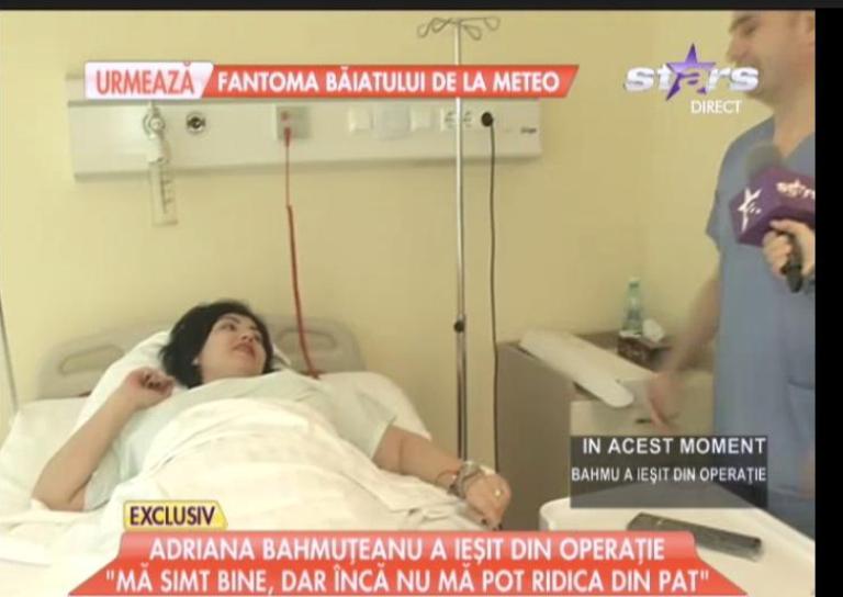 Veselă, tonică şi cu zâmbetul pe faţă. Aşa au surprins-o reporterii pe Adriana Bahmuţeanu după operaţia de hernie de disc la care a fost supusă. Cu toate că a fost totuşi o intervenţie nu tocmai uşoară şi este necasară o recuperare, Bahmu va reveni astăzi la emisiunea pe care o prezintă. Doctorul care a operat-o i-a sugerat să se odihnească, însă Adriana pare mai tonică şi mai energică ca niciodată. ''Trebuie să se odihnească. Nu a fost un proces greu. Adriana se simte bine şi astăzi va pleca acasă'', a povestit medicul care a operat-o la Antena Stars.