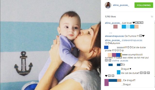 În urmă cu puţin timp, Alina a postat o imagine cu Alexandru care a stârnit admiraţie din partea fanilor săi virtuali. Una dintre admiratoare a ţinut să o felicite "Ce adorabili! Ce mămică drăguță ești! Vă iubesc pe amândoi", a scris aceasta.