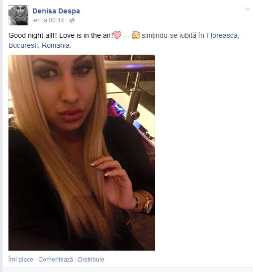 În altă ordine de idei, chiar dacă încă nu a cedat farmecelor lui Franco, Denisa Despa pare să îi dea, din când în când, speranțe fostului iubit al lui Carmen Minune și a postat recent pe contul ei de socializare o fotografie în care pare să îi trimită ”bezele” unui bărbat precizând că ”se simte iubită”. Iar acest lucru, cu siguranță, îi va pune inima pe jar lui Franco, cu atât mai mult cu cât dansatoarea favorită a lui Florin Salam nu este implicată în nicio relație.