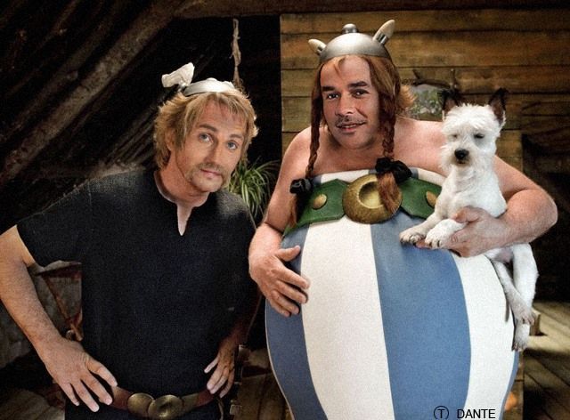 În imagine, îi puteţi vedea pe Răzvan şi Dani în pielea personajelor Asterix şi Obelix. Răzvan este Obelix, aşa că are burtă, iar îmbrăcămintea sa este sub forma unui butoi. În plus, Răzvan se poate lăuda cu părul împletit şi prins în codiţe. Dani este Asterix, iar din cauza aceasta este mic de statură. Mai mult, Răzvan este blond şi este îmbrăcat în culori închise.