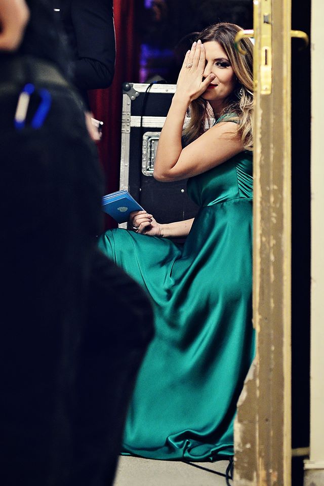 Prezentatoarea TV este o prezență extrem de activă, iar în această seară a postat pe o pagină de socializare o fotografie de la Ateneul Român, unde a îmbrăcat o rochie verde, care îi scoate în evidență burtica.