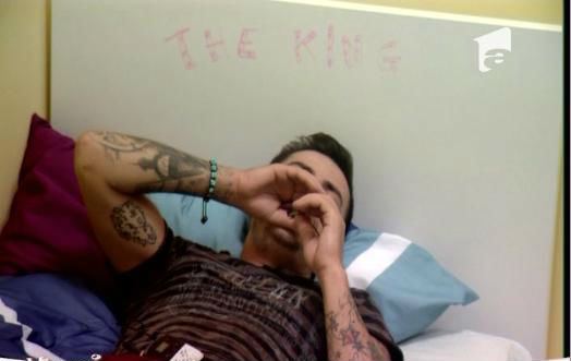 Cristian, un tânăr de 24 de ani din Giurgiu este un tip extrem de încrezător în forţele proprii, motiv pentru care şi-a scris pe cadranul patului "The King" (Regele), dovadă că are o părere extraordinară despre propria persoană.