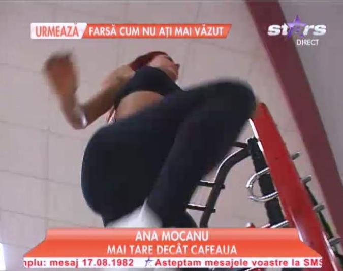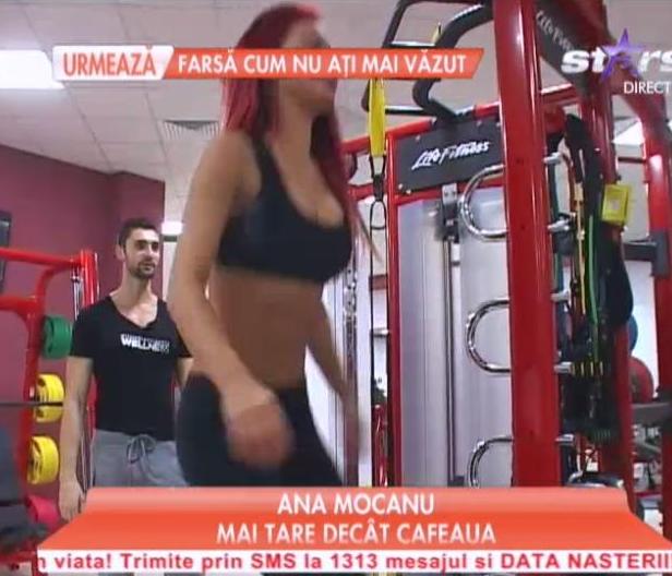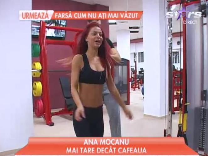 Ana Maria Mocanu, într-un top minuscul, trage din greu la sală. Roşcata îşi incită fanii, la prima oră a dimineţii, cu mişcări lascive