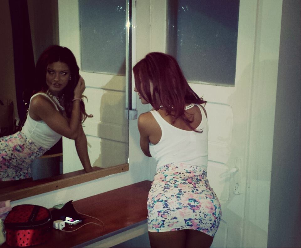 Roşcata a publicat, pe contul de socializare, o poză cu ea îmbrăcată mai mult decât provocator, într-un maieu alb, mulat, prin care i se vede dantela de la sutien, şi o fustă foarte-foarte scurtă şi strâmtă, care, dacă frumoasa asistentă se mai apleca doar un pic, îi lăsa descoperit fundul incitant.