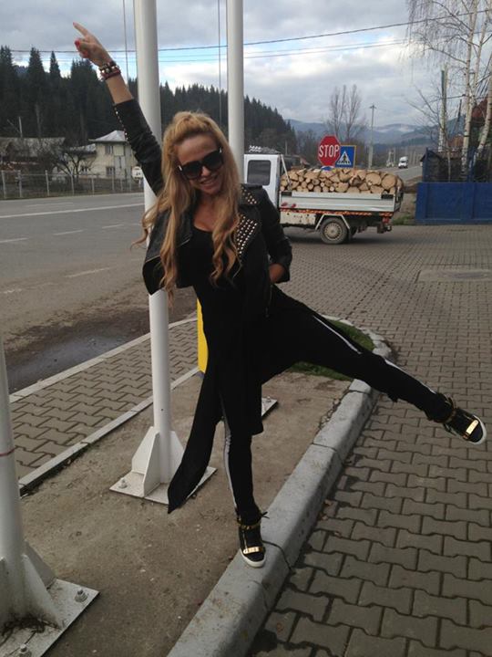 Îmbrăcată destul de subţire pentru vremea răcăroasă de toamnă târzie, într-o geacă de piele, o pereche de pantaloni sport şi o bluză lejeră, toate negre, Anda a ieşit "la plimbare". Blondina şi-a accesorizat ţinuta cu o pereche de ochelari, cu toate că la prima oră a dimineţii soarele este mai mult anemic decât agresiv. Cu o mână şi un picior în aer, cântăreaţa pare că exersează o figură de dans. Hmm, la o asemenea poziţie nu ne-am mira dacă vreun şofer ar opri să vadă încotro merge artista.