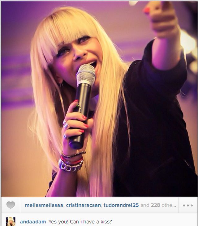 Ei bine, deşi Anda a pus această întrebare, singurul bărbat pe care vedeta vrea să îl sărute este Cătălin. Frumoasa cântăreaţă a postat pe contul personal de Instagram o fotografie făcută la ultimul ei concert, la care a adăugat mesajul halucinant "Da, tu! Pot să te sărut?!". Fanii înfocaţi ai vedetei au sărit imediat cu o mulţime de comentarii în speranţa că poate unul va câştiga sărutul Andei Adam.