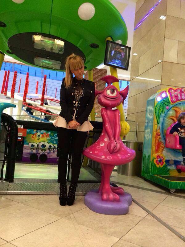 Artista a tras o fugă la mall şi nu s-a putut abţine să nu facă o poză alături de o "extraterestră" roz.
