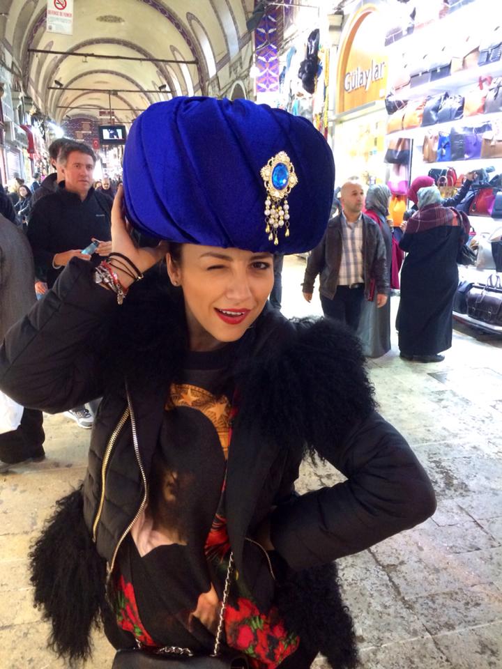 Ca să fie cât mai "autentică", vedeta a purtat un turban albastru de sultană şi şi-a făcut poză într-unul din bazarurile turceşti."Weekendul asta am fost intr-o mini vacanta in Istanbul! M-am simtit excelent, alaturi de finii nostri mari (Cristian si Iulia) si finii mici (Vlad si Loredana) (Bogdan si Laura), dar si alaturi de niste oameni senzationali, niste prieteni foarte dragi ! Am fost o mare familie ! Va pup si sa aveti grija de voi ...", le-a povestit Andra admiratorilor ei. Aceştia au fost intrigaţi, însă, de imprimeul de pe bluza cântăreţei. Acesta întruchipează o femeie cu breton şi decolteu, cu o aură în jurul capului, ce pare a imita o icoană.
