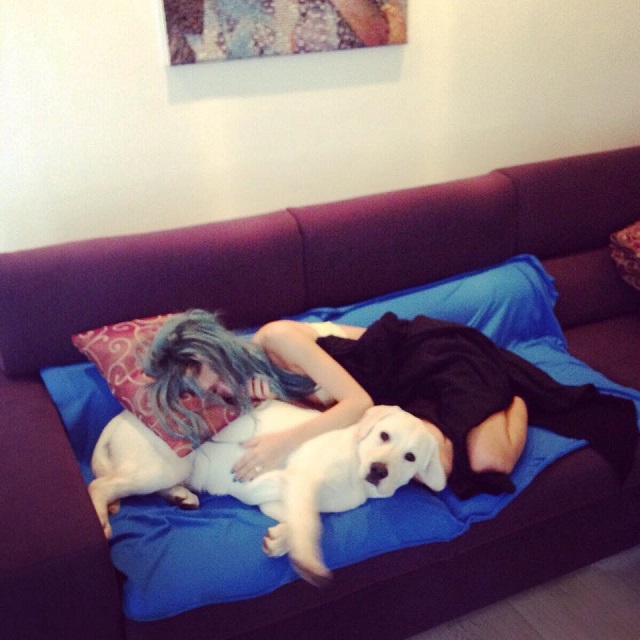 Artista este ciufulită şi este învelită cu o pătură, iar imaginea a fost pe placul prietenilor ei virtuali care au dat multe like-uri. "Mai bine ţii un bărbat în braţe, nu un câine", "Ce câine frumos ai!" sau "Of Doamne, ce scumpi!" sunt doar câteva dintre comentariile fanilor de pe Facebook.