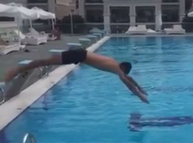 În timp ce Andreea se distra de mama focului pe tobogane, George a ales să se relaxeze la piscină, de unde şi-a exersat săriturile în apă, la care pare să se priceapă destul de bine.