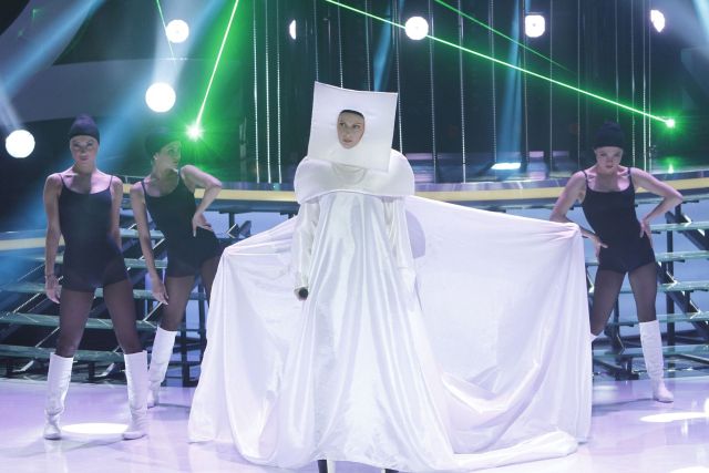 Și chiar dacă juratul a apreciat mai apoi prestația artistică a Andreei, declarându-se plăcut impresionat de ce-i poate acesteia pielea, el nu s-a putut abține, ulterior, când artista s-a așezat pe canapeaua concurenților, să-i facă observație să-și dea jos de pe cap “panoul”, pentru că nu se mai văd de el colegii așezați în spate. Andreea și l-a dat. Și, dacă tot o rugase să-i împrumute ceva din vestimentația ei... abundentă, “pentru că îmi reabilitează ăștia blocul, niște polistiren ceva”, Andreea îi îndeasă pe cap lui Aradits, cu generozitate, “panoul” hulit.