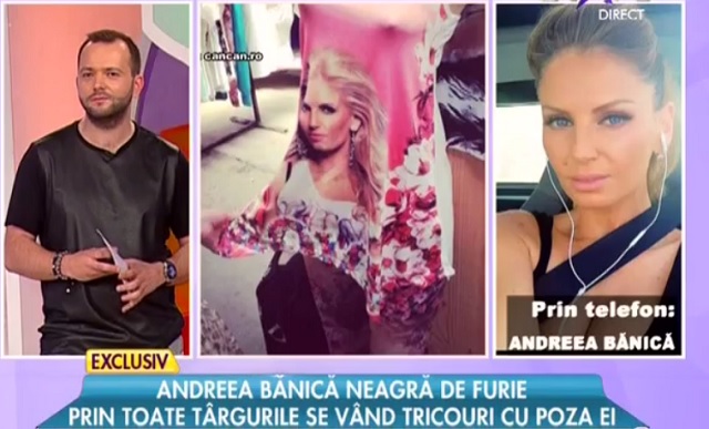 Se pare că tricourile cu chipul Andreei Bănică imprimat pe ele se vând ca pâinea caldă în câteva târguri din Capitală, fără ca artista să fi ştiut asta.