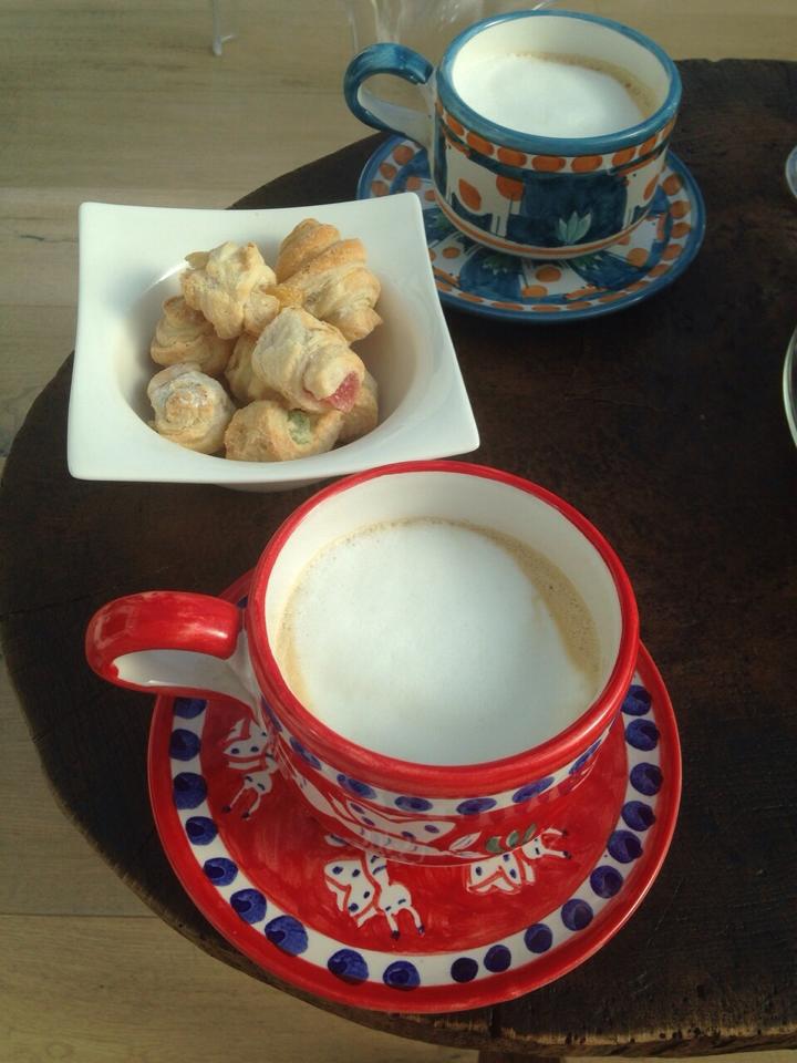 "Cappuccino de la mine şi cornuleţe cu rahat de la mama, în ceşti uriaşe cumparate din Ravello! Bun până la cer", este mesajul care însoţeşte imaginile postate de ştiristă.