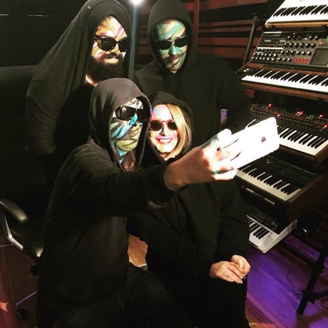 Andreea apare într-o fotografie, îmbrăcată într-o mantie neagră şi vopsită pe faţă, alături de trei bărbaţi, cel mai probabil într-un studio de înregistrări. Fanii s-au întrecut în complimente atunci când au văzut imaginea.