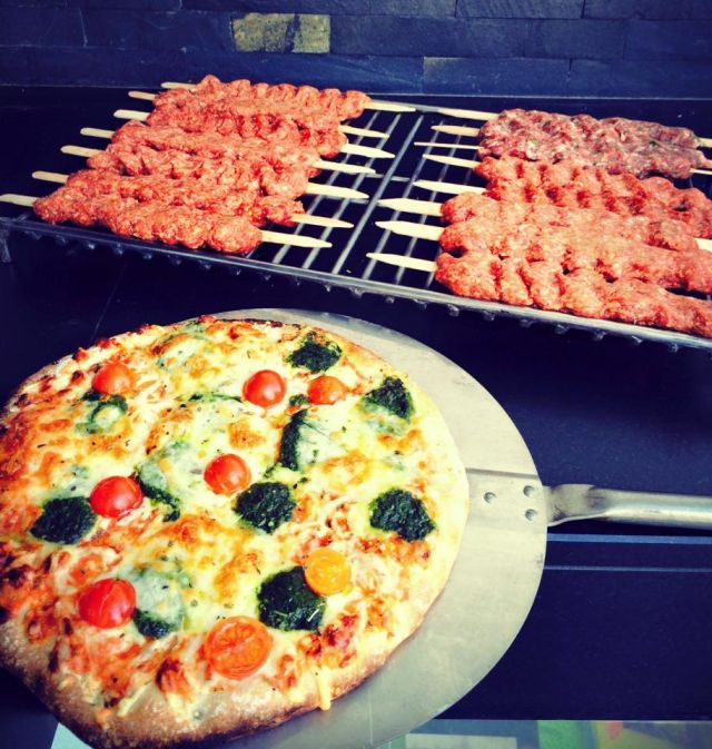În fotografii apar bunătăţile pregătite pentru masa de duminică: pizza cu legume şi o mulţime de carne la grătar.