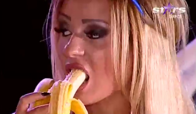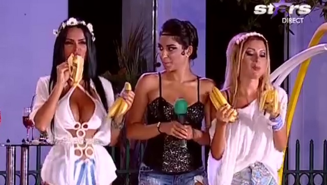 Andreea Mantea, prezentatoarea emisiunii "Petrecerea burlăciţelor", de pe Antena Stars le-a provocat pe fete să mănânce trei banane într-un minut şi jumătate. Se pare că Renata e "campioana" bananelor.