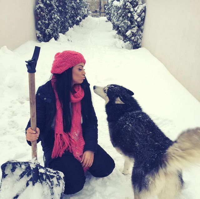 Chiar şi aşa, Andreea a avut parte în timp ce făcea această activitate de compania unui căţel din rasa husky de care pare să fie complet îndrăgostită. Fanii au apreciat imaginea cu multe like-uri şi complimente la adresa frumosului patruped.