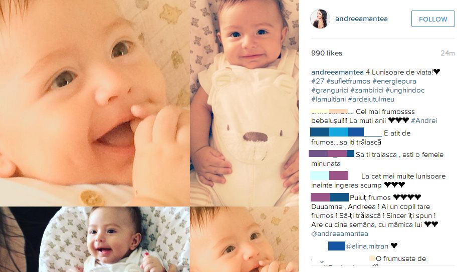 De curând, Mantea a postat pe o reţea de socializare un colaj de fotografii cu băieţelul ei care s-a transformat total, devenind de nerecunoscut. Dacă în primele luni de viaţă avea părul negru ca tăciunele, acum acesta s-a deschis la culoare semnificativ.
