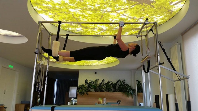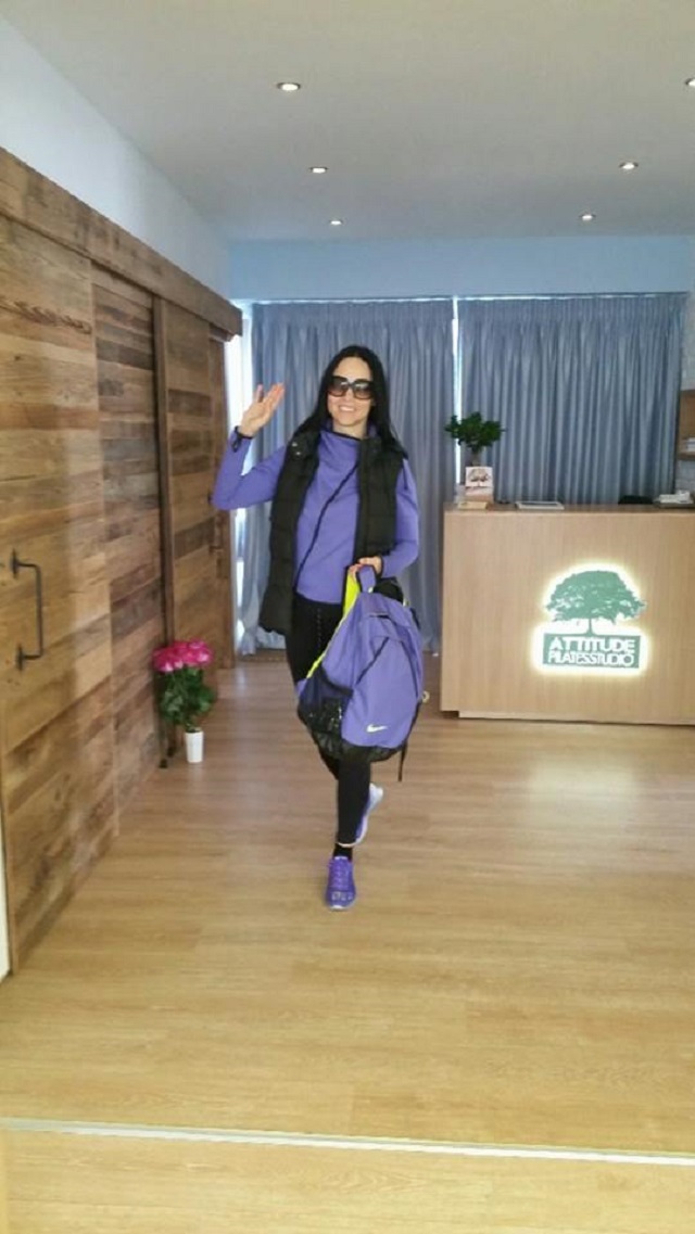 Andreea Marin se lasă "suspendată" la orele de pilates pentru a scăpa de kilogramele în plus, acumulate în vacanță.
