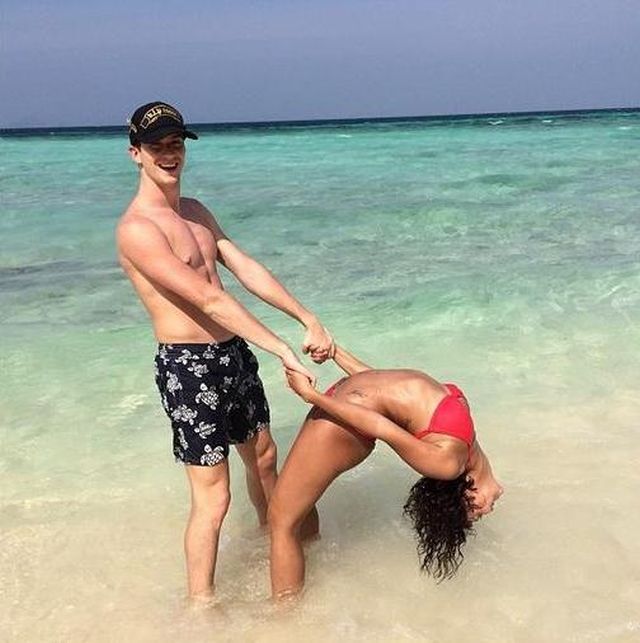 Dansatoarea nu are stare nici în vacanţă, aceasta este permanent pusă pe şotii. Poziţia în care s-a fotografia alături de iubitul ei i-a amuzat pe toţi.