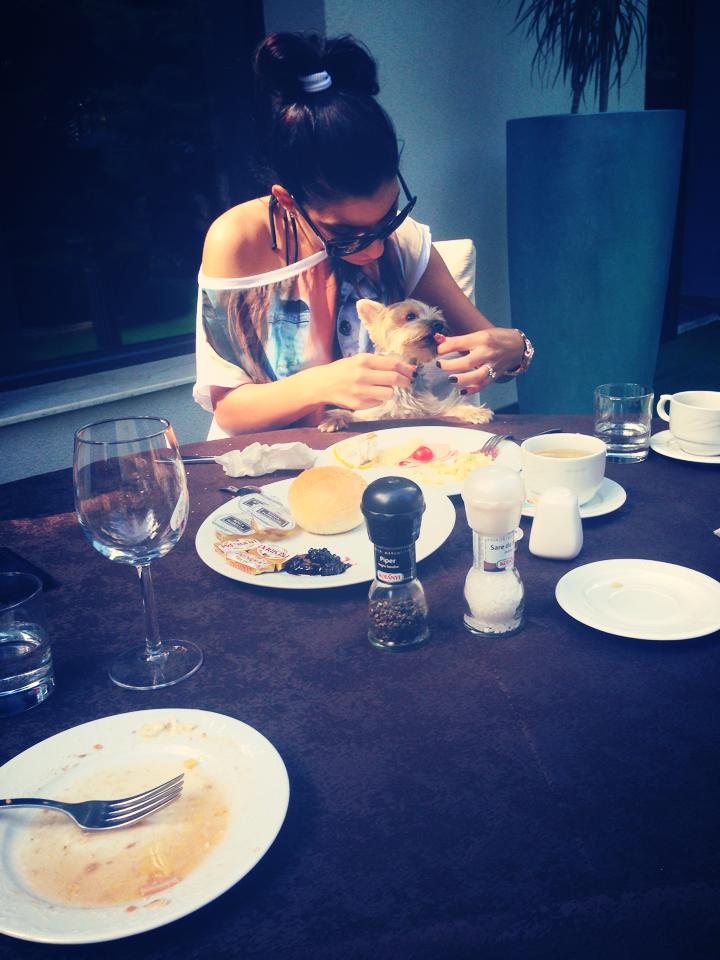Bruneta şi-a postat pe contul de socializare o fotografie de la micul dejun. În loc să-şi răsfeţe iubitul, care probabil stătea şi el la masă cu vedeta, Andreea îi dădea mâncare căţelului. Să fie acesta un semn că fotomodelul e pregătit să devină mamă? Hmm, poate în curând ne va da vestea cea mare.