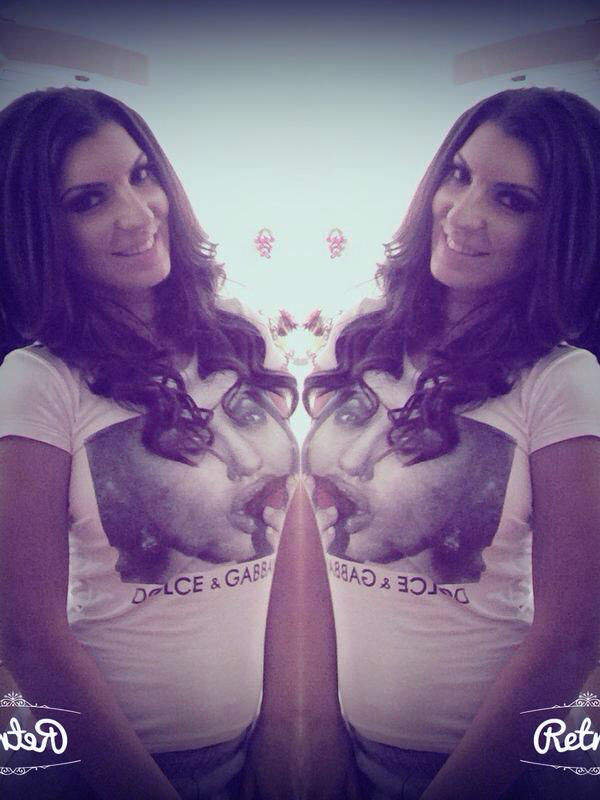 Bruneta s-a lăsat fotografiată "în oglindă", astfel că, în mijlocul imaginii, braţele ei se contopesc şi formează, din păcate, ceva ce seamănă cu un penis. Pe lângă asta, inscripţia de pe tricoul Andreei este destul de porno, cu o fată care suge, lasciv, un fruct, ceea ce face ca imaginea să ducă şi mai tare cu gândul la lucruri perverse.