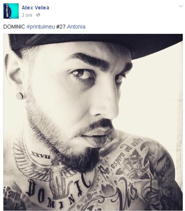 "Dominic, prinţul meu! 27, Antonia", este mesajul prin intermediul căruia cântăreţul a anunţat numele fiului lui. Dependent de tatuaje, artistula şi-a imprimat numele băieţelului său pe trup, sub claviculă.