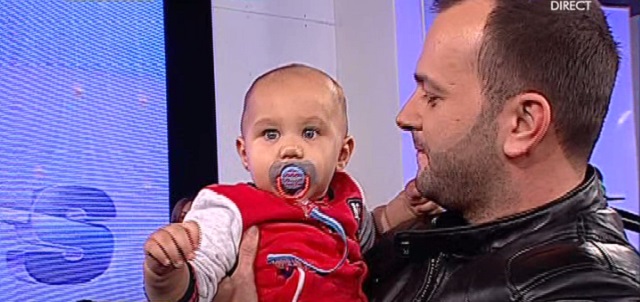 Prezentatorul a fost foarte încântat de cel mic şi a vrut să vadă cum i-ar sta cu un băiat în braţe.