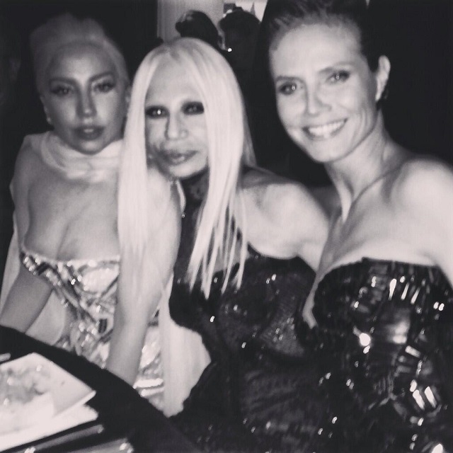Blonda s-a pozat la panou alături de Donatella Versace, cea care i-a făcut și rochia, numai că fanii au rămas șocați de apariția fashionistei. Ajunsă la vârsta de 59 de ani, Donatella este plină de botox și arată îngrozitor. Heidi nu s-a pozat numai cu Versace, ci și cu celebra Lady Gaga, care mai avea puțin și rămânea în sânii goi.