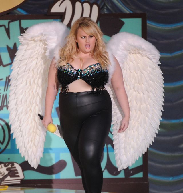 Apariţia a fost una hilară, ţinuta respectivă lăsând să se vadă toate imperfecţiunile trupului artistei australiene, care a pierdut lupta cu kilogramele. Rebel Wilson este masivă de sus până jos: are picioarele foarte groase, o burtă de toată frumuseţea, bust care se revarsă şi braţe ca de halterofil.