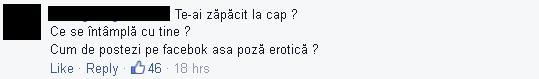 "Dragul meu soţ, îţi mulţumesc pentru surpriză!!!", a scris prezentatoarea TV la descrierea pozei. În timp ce mulţi au apreciat-o şi au aplaudat curajul de a se fotografia în această ipostază, alţii au considerat că haina pe care ar fi trebuit s-o poarte Gabriela Cristea e decenţa. Unul dintre fanii săi a zguduit-o puţin cu un comentariu: "Te-ai zăpăcit la cap? Ce se-ntâmplă cu tine? Cum de postezi pe facebook aşa poză erotică?". Comentariul a strâns zeci de aprecieri.