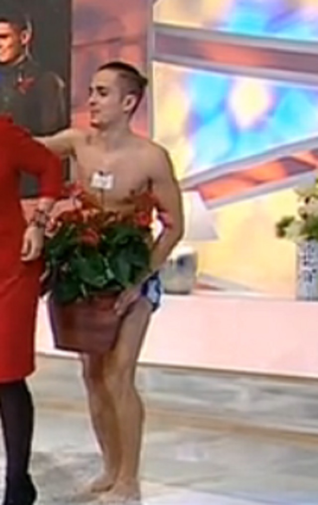 După ce în urmă cu două zile Andrei Leote s-a filmat fără haine în pădure, acum a venit gol la o emsiune. Câştigătorul primului sezon al emisiunii "X Factor" a oferit un şoc tuturor fanilor când a venit dezbrăcat şi cu un ghiveci de flori care îi acoperea partea intimă.