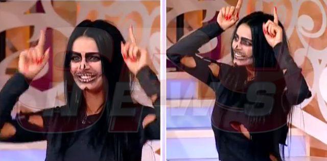 Asistenta Adrianei Bahmuţeanu a speriat, astăzi, audienţa, după ce şi-a făcut apariţia în emisiunea "Necenzurat", de la Antena Stars, machiată ca pentru Halloween.