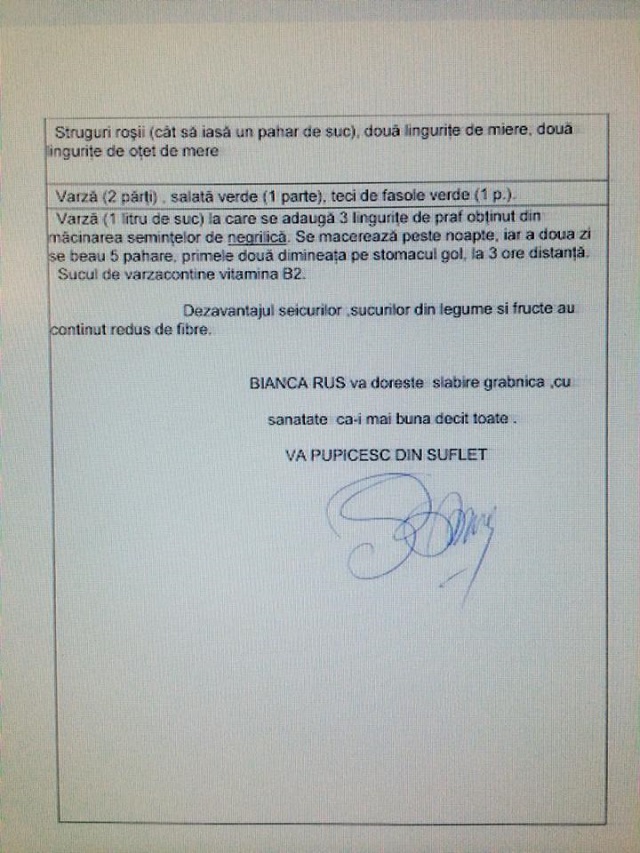 Cântăreaţa a slăbit mult în ultima perioadă iar asta se vede cu ochiul liber. Întrebată de prietenii ei virtuali cum a reuşit să scape de kilogramele în plus, Bianca Rus a vrut să le vină în ajutor şi a postat pe o reţea de seocializare câteva reţete care au ajutat-o pe ea.