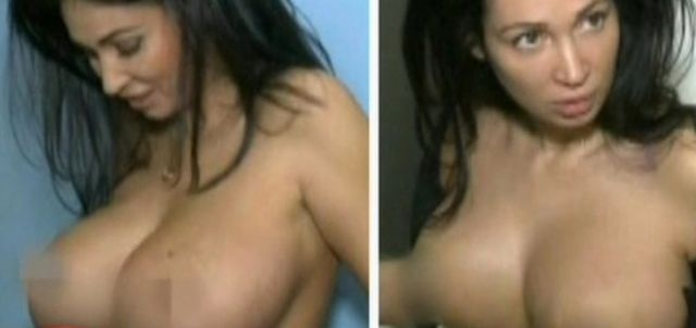 În imaginea de mai sus, puteţi vedea cât de mari erau sânii siliconaţi ai vedetei, nefiind de mirare că a luat decizia de a-i micşora. Nicoleta Luciu a arătat imaginile cu ea la o emisiune de televiziune.