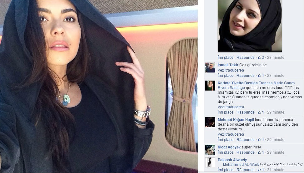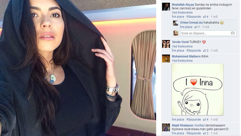 Recent, Inna apublicat o fotografie, în care poartă un şal negru pe cap, care aduce aminte de veşmântul femeilor musulmane. La scurt timp după, fanii ei turci au tăbărât cu like-uri şi sute de comentarii, din care nu putem deduce decât că au fost complimente la adresa ei.