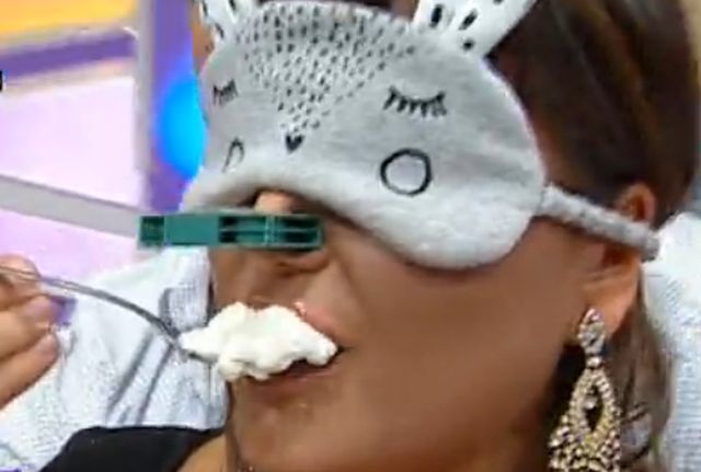 Bruneta a fost obligată să mănânce mai multe ingrediente, legată la ochii şi cu nasul prins cu un cleştişor de prins rufe pe sârmă. Din păcate pentru ea, Bianca a reuşit să se murdărească groaznic.