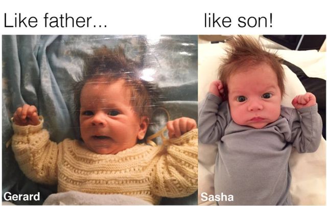 De curând, Shakira a postat pe o reţea de un colaj de fotografii cu tatăl copiilor ei, Gerard Pique, şi mezinul familiei, Sasha. Micuţul este copia fidelă a tatălui său încă de pe acum.