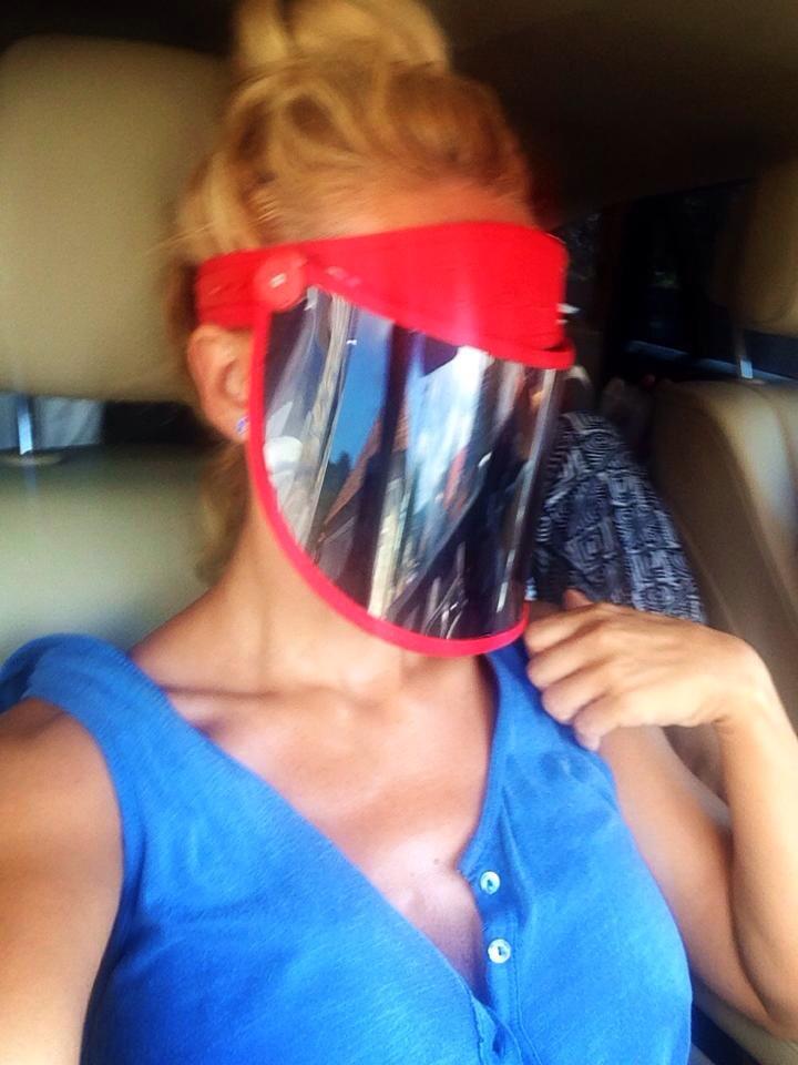 Frumoasa blondă s-a săturat s-o bată soarele-n ochi când se află în maşină, aşa că şi-a tras cozorocul peste ochi şi şi-a făcut un selfie. Deşi Anda a scris că se fereşte de soare cu acest accesoriu, admiratorii săi s-au întrebat ce ascunde, de fapt, sub "mască", sugerând că vedeta se fereşte să-şi afişeze chipul fără machiaj. Când se află pe drum spre concerte, Andra renunţă la hainele elegante şi strălucitoare. În această poză este îmbrăcată cu un maiou albastru, simplu, şi poartă părul uşor ciufulit, prins în coc.