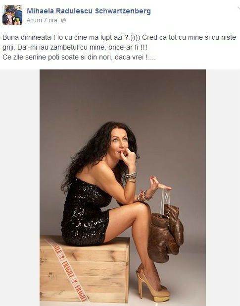 Una peste alta, Mihaela a fost extrem de criticată pentru atitudinea ei, însă se pare că se afla în cunoştinţă de cauză pentru lucrurile ce aveau să aibă loc astăzi. Într-o postare matinală de pe Facebook, Mihaela Rădulescu le-a transmis un mesaj destul de sumbru prietenilor ei virtuali, semn că urmează să aibă o zi dificilă.