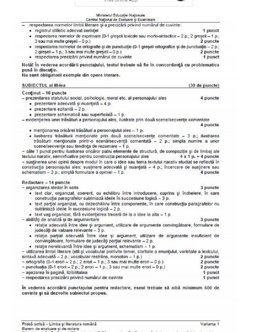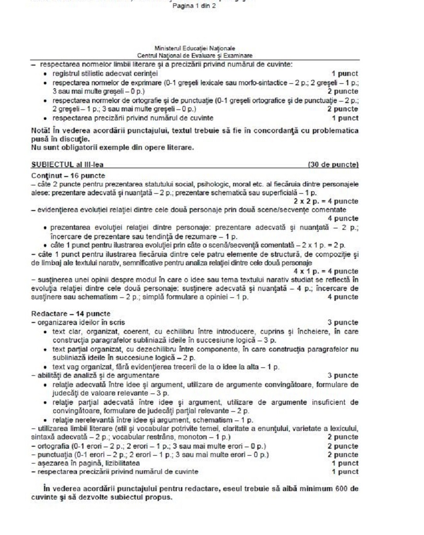 BACALAUREAT 2017. BAREM ROMÂNĂ. Baremul pentru proba la Limba şi Literatura Română a fost afişat pe www.edu.ro.