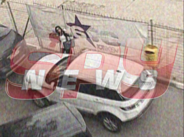 Din imagini se vede foarte clar cum bărbatul încearcă să fie cât mai discret cu puţinţă. Apare rapid în raza camerelor de luat vederi, plantează buchetul pe capota bolidului de zeci de mii de euro al vedetei, se asigură încă o dată că sunt aşezate bine şi pleacă în mare grabă.
