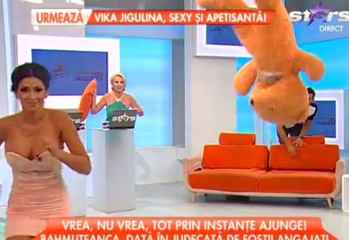 Scena a luat sfârşit într-un ton vesel, la intervenţia colegei de prezentare a lui Bote, frumoasa Rocsana Marcu.