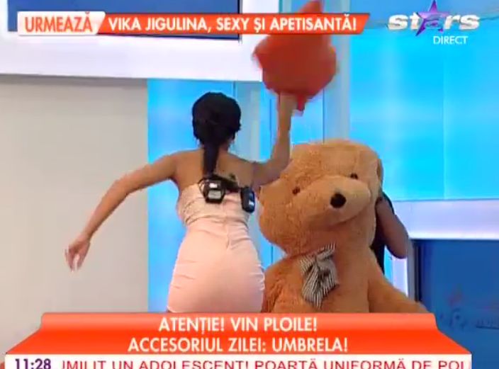 O bătaie cu jucării a luat naştere pe nepusă masă în platoul emisiunii "Star Matinal". Raluca Dumitru nu a mai suportat tachinările colegului de platou şi l-a atacat pe acesta cu ce a prins la îndemână.
